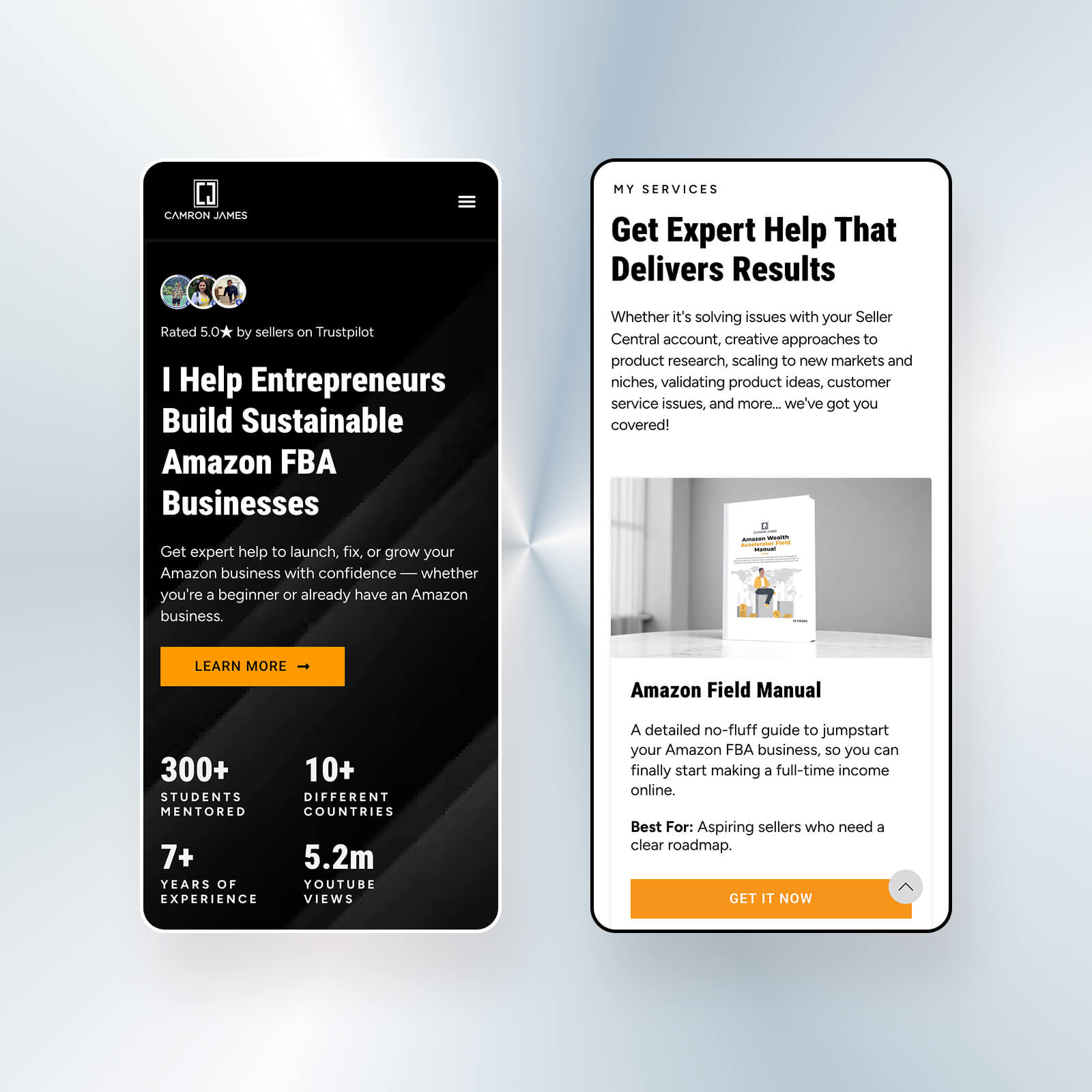 Camron James is a 7-figure Amazon FBA seller and consultant. He came to me needing a new website to build his online presence and attract more clients for his consulting business.