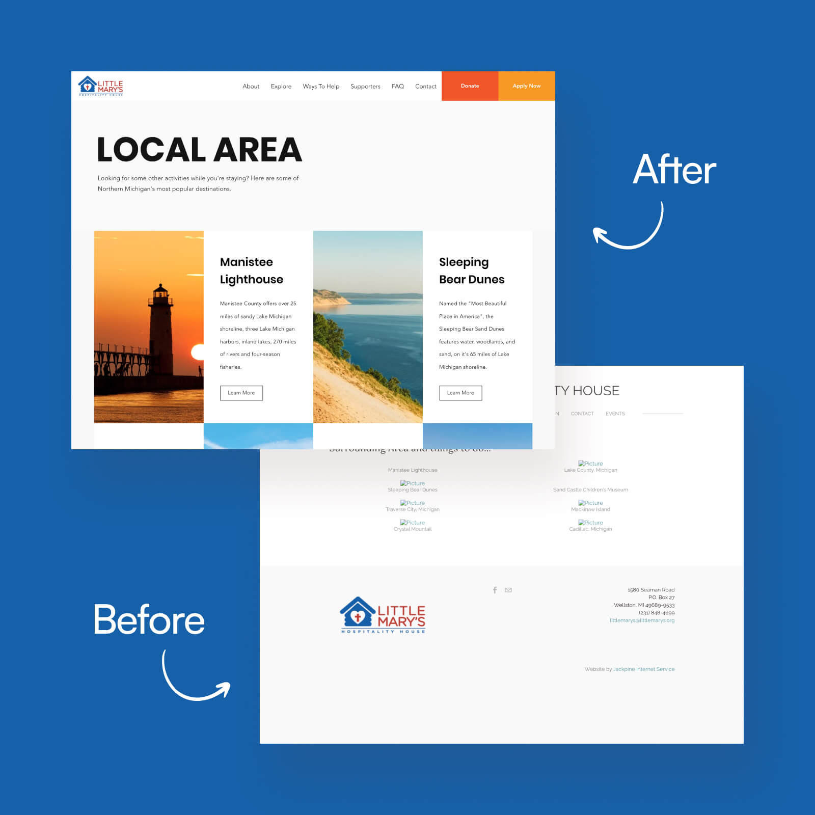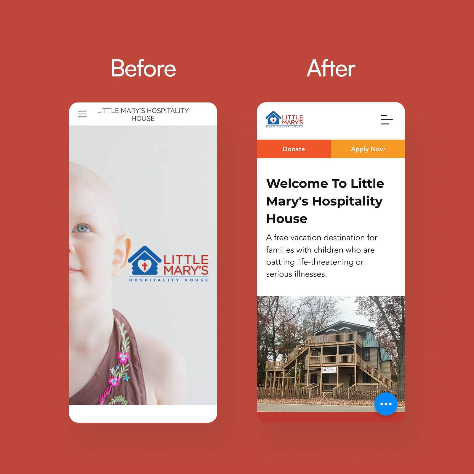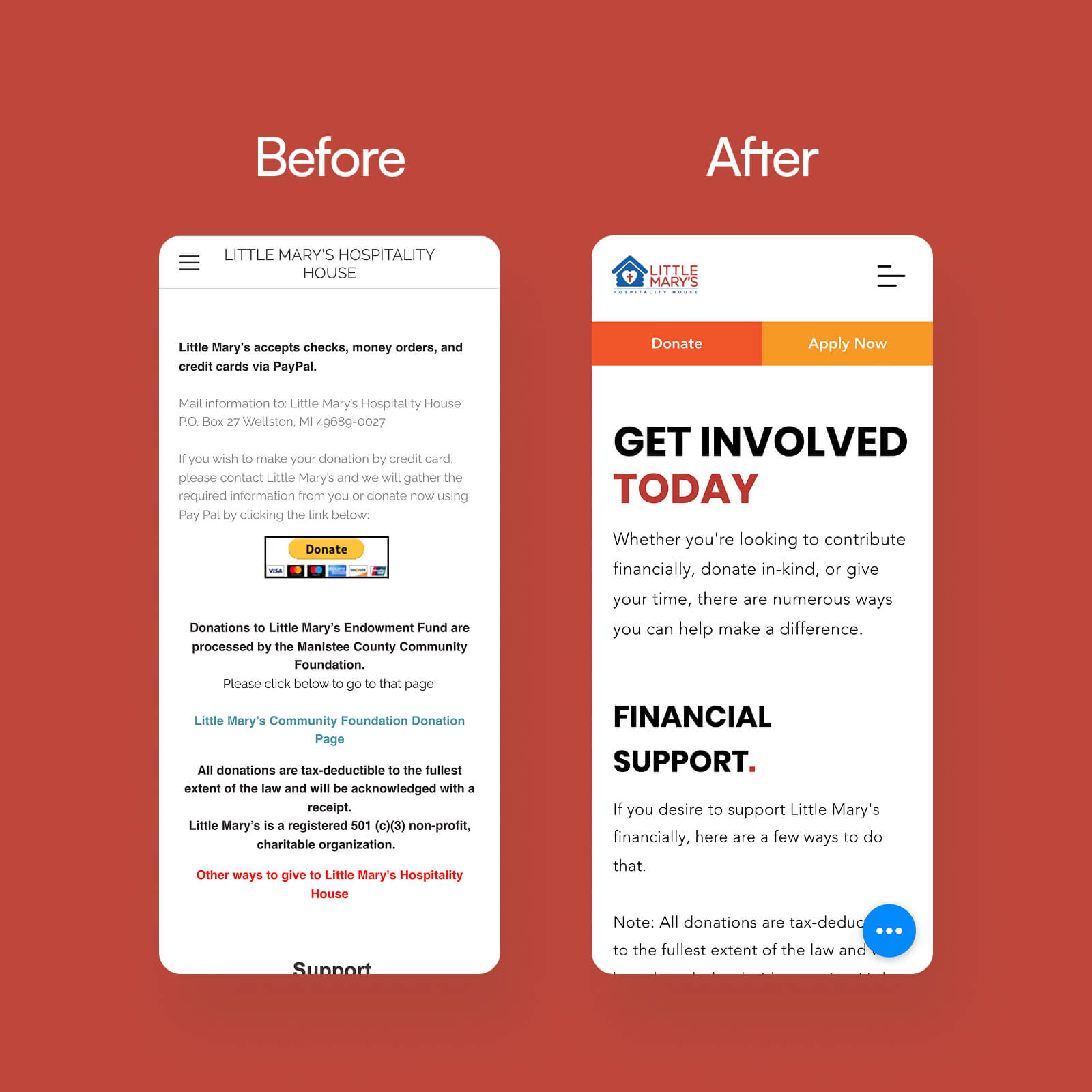 They came to me needing a new website because their old site was outdated and provided very little information. Additionally, website visitors could not apply online or make online donations.