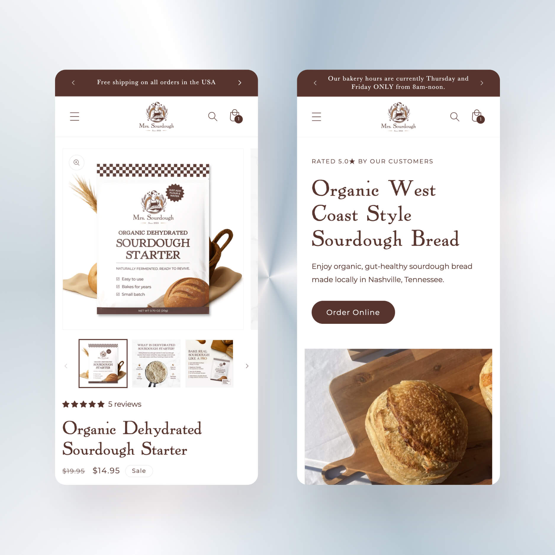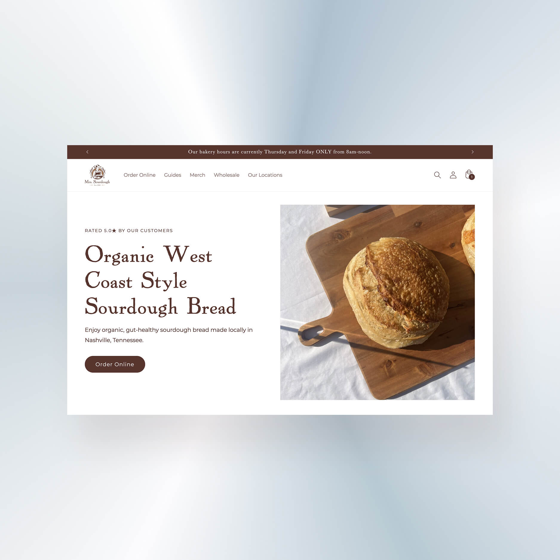 Design and marketing for a Nashville-based organic bakery. Work includes website design & development, landing pages, business card & lead magnet design, product packaging, weekly newsletter management, and other on-demand design and marketing needs.